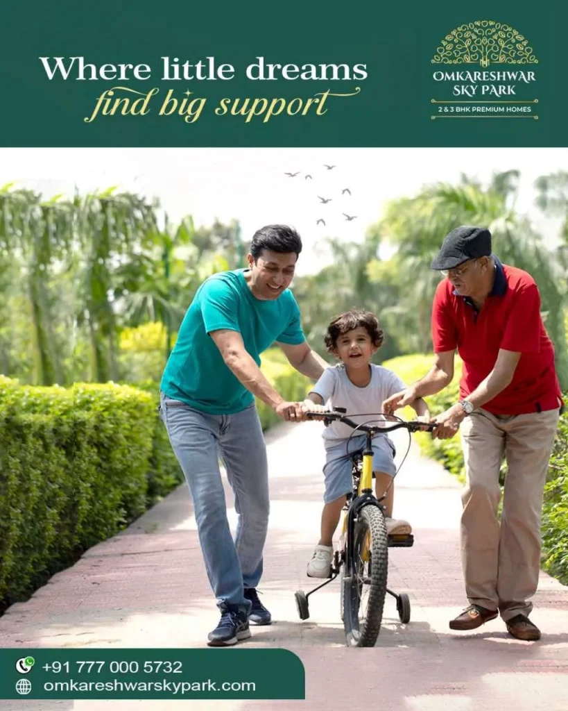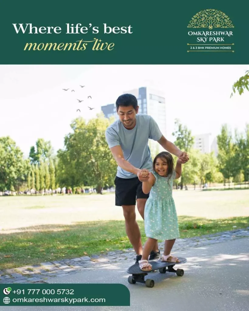 Omkareshwar SkyPark brings you well-planned 2 & 3 BHK homes designed for comfortable and peaceful living. Each home is thoughtfully crafted to give your family the space, privacy, and quality they deserve. With modern design, ample natural light, and a calm environment, SkyPark offers a perfect balance of style and simplicity. It’s a place where you can unwind, grow, and enjoy everyday life with ease. Choose a home that feels warm, inviting, and truly your own